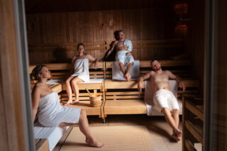 Wählen Sie Ihre Hitze: ein sanftes Sanarium, die klassische Finnische Sauna oder die rustikale Blockhaussauna. Für welche Sie sich auch entscheiden – Entspannung ist garantiert.