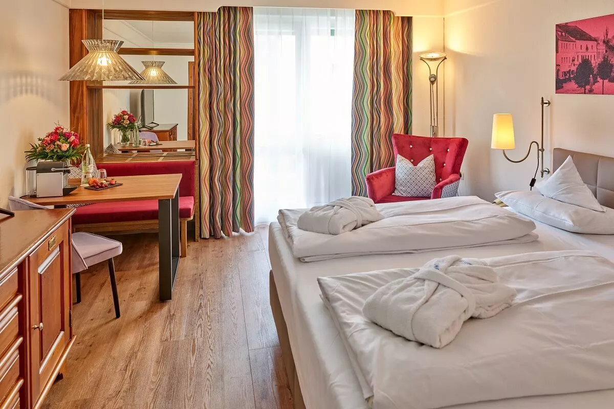 Von Einzelzimmern für Alleinreisende bis hin zu Familiensuiten, die Generationen zusammenbringen – jedes Zimmer ist ein Rückzugsort für sich. Details machen den Unterschied: Airfect-Kissen sorgen für erholsamen Schlaf, während sorgfältig ausgewählte Pflegeprodukte einfache Routinen in kleine Luxusmomente verwandeln. Und weil Familie jedes Mitglied einschließt, sind auch vierbeinige Freunde in unseren speziellen hundefreundlichen Zimmern willkommen – mit direktem Terrassenzugang, Decke, Napf und Handtuch für nur 15 € pro Nacht.